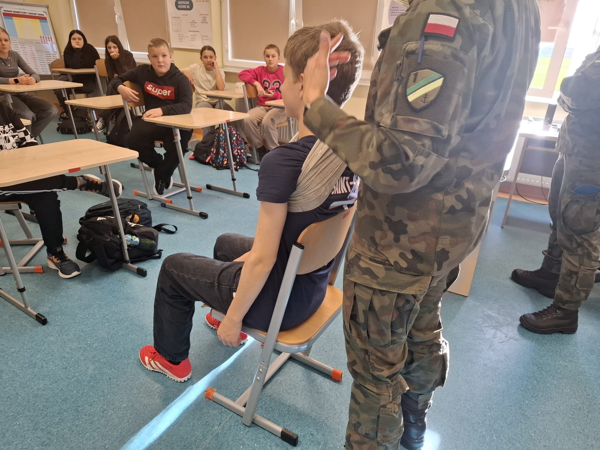 Podczas spotkań uczniowie mieli okazję nie tylko posłuchać o pracy wojska, ale również aktywnie uczestniczyć w zajęciach praktycznych, które wzbudziły ogromne zainteresowanie i zaangażowanie. Była to cenna lekcja odpowiedzialności, współpracy i bezpieczeństwa.