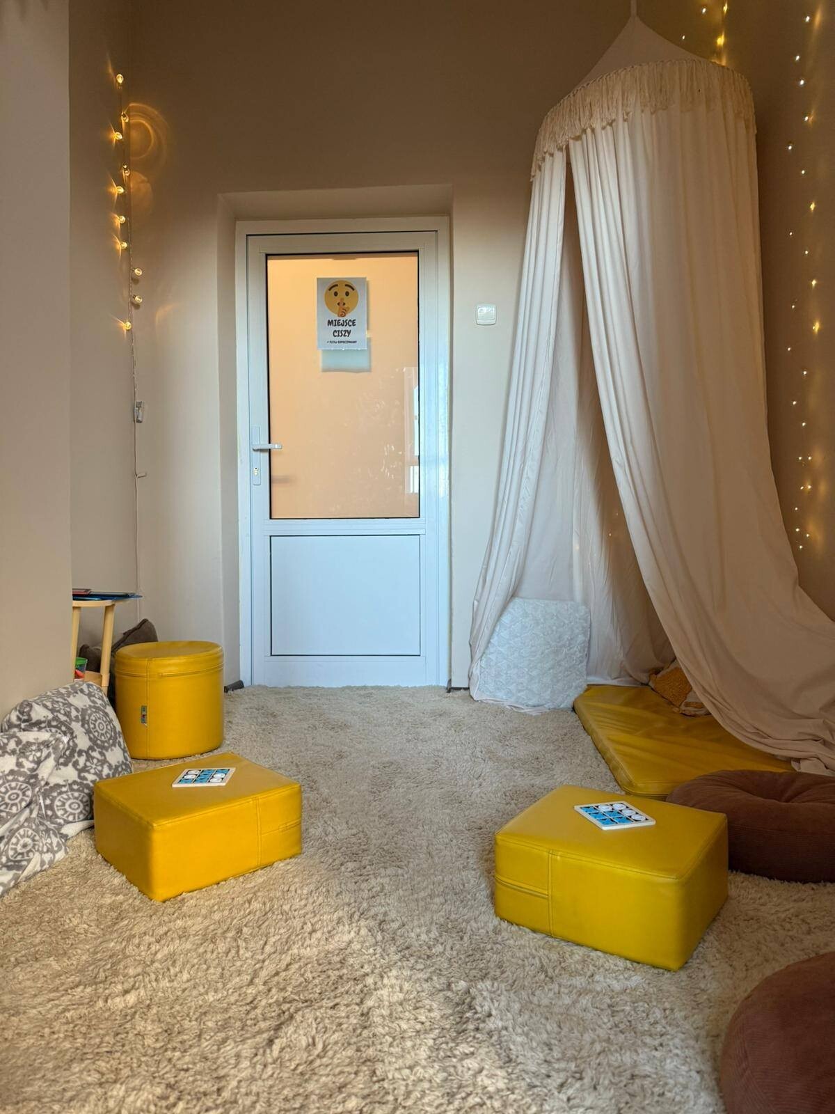 chcielibyśmy przedstawić Wam nasze wyjątkowe Miejsce Ciszy – przytulny kącik stworzony z myślą o tym, aby każde dziecko mogło odnaleźć chwilę spokoju, odpocząć, zrelaksować się i wrócić do równowagi emocjonalnej.