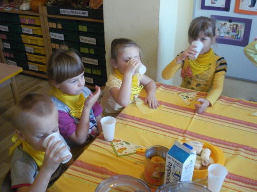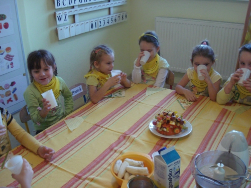 Potem udaliśmy się do naszej sali, gdzie wykonaliśmy koktajl bananowo-brzoskwiniowy.