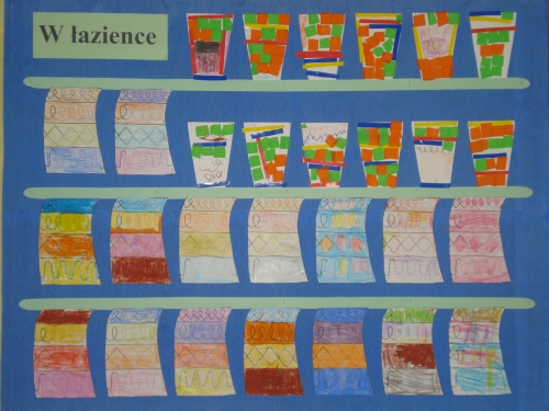 W minionym tygodniu wykonaliśmy prace plastyczne przedstawiające kubki do mycia zębów oraz ręczniki łazienkowe.