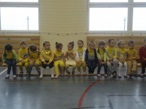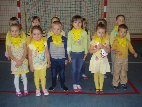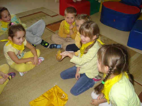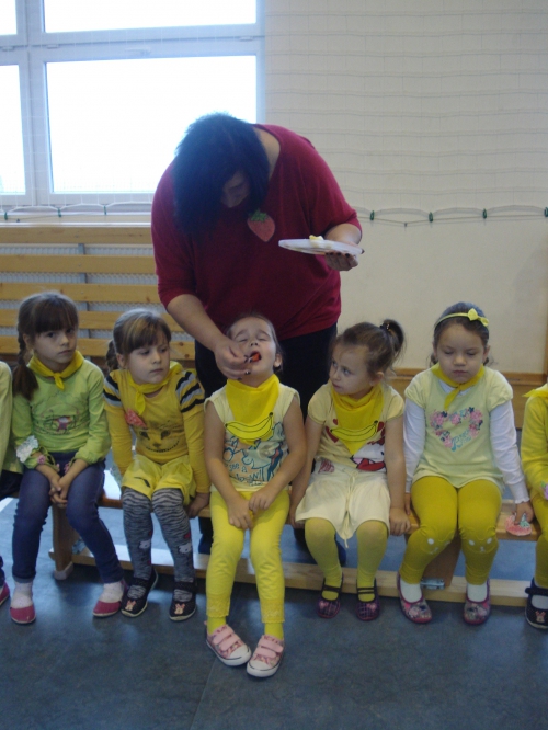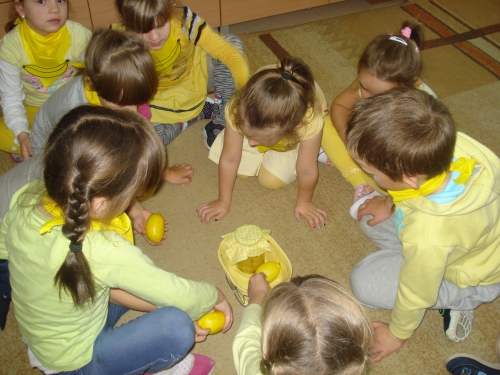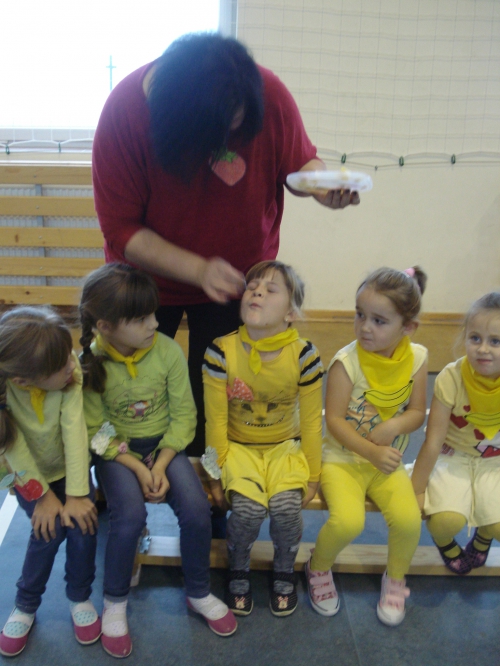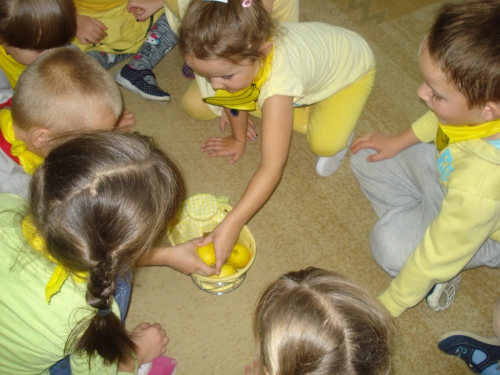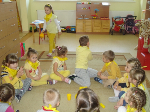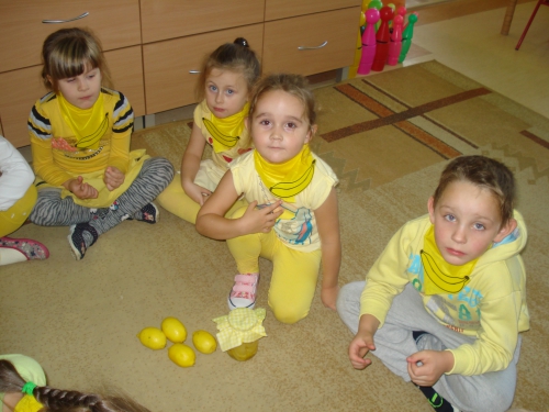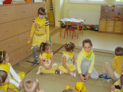 Ubrani w stroje o żółtej barwie wzięliśmy udział w Kolorowym Dniu Owoców i Warzyw.