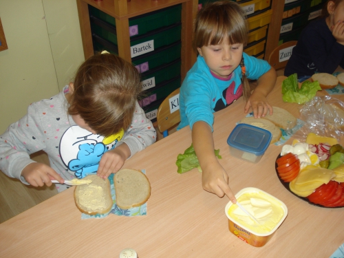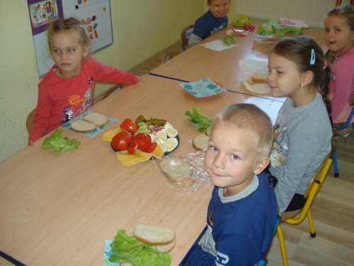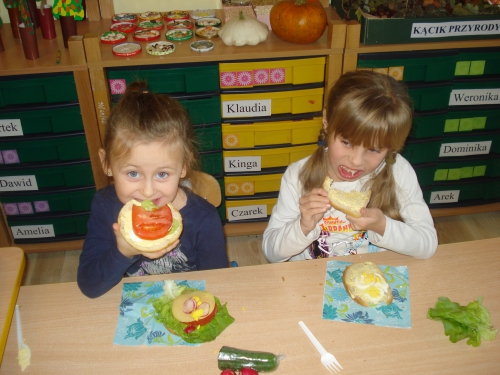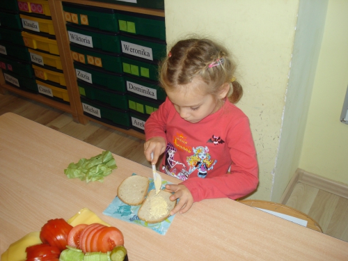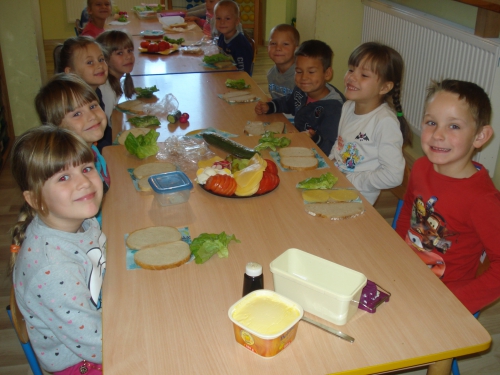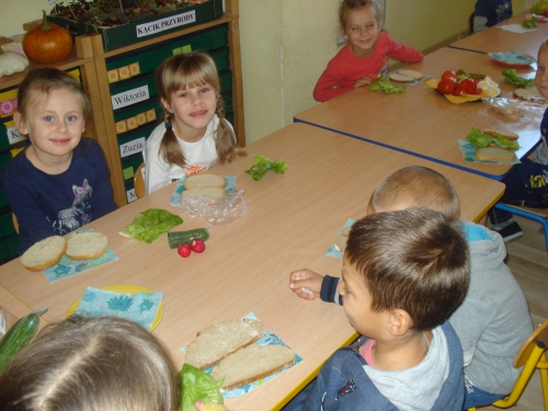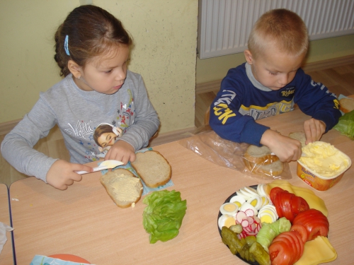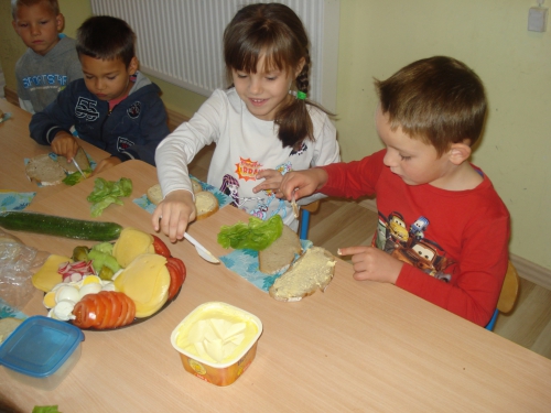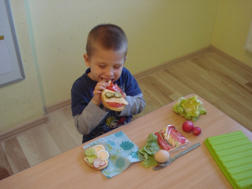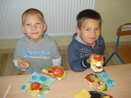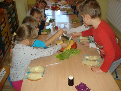 Później zaczęliśmy dekorować kanapki zdrowymi produktami. Każdy wybierał te, które lubi najbardziej.