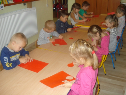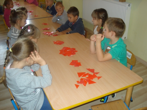 Utrwalaliśmy figury geometryczne poprzez wyciskanie ich z kartoników.