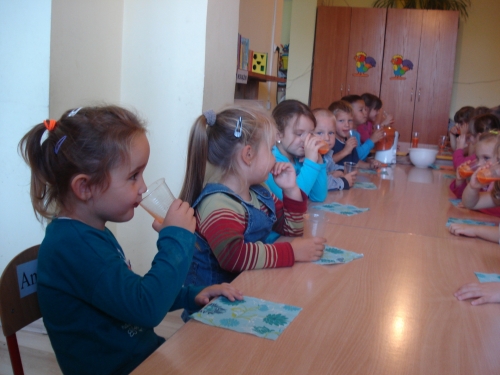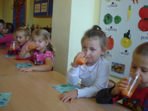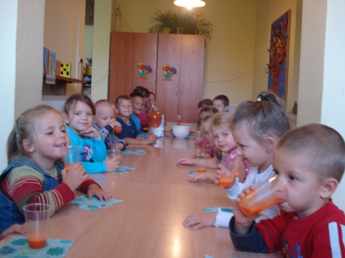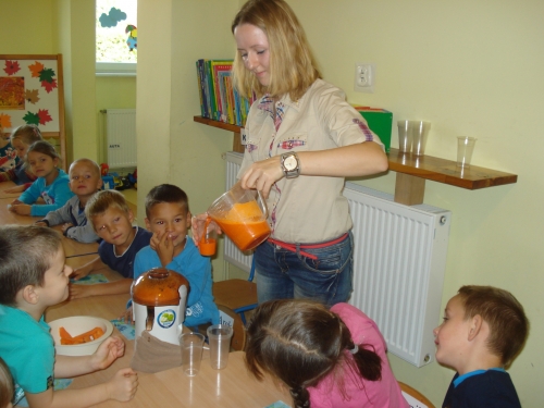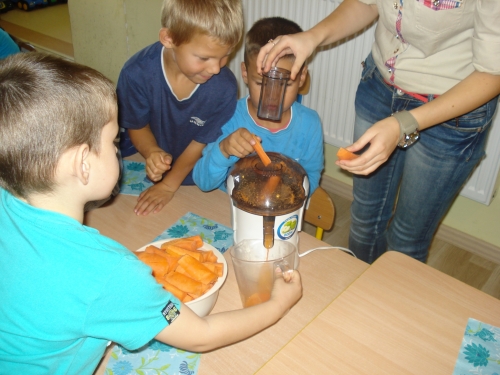 A na zakończenie zajęć wykonaliśmy sok marchewkowy i wypiliśmy go z wielkim apetytem.