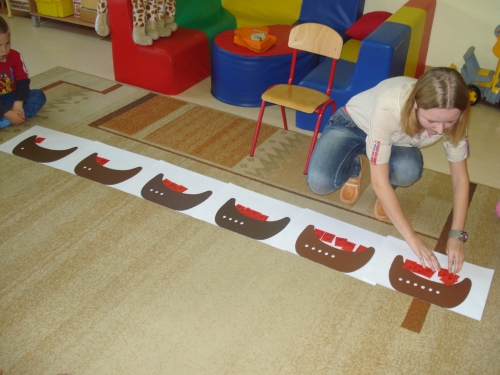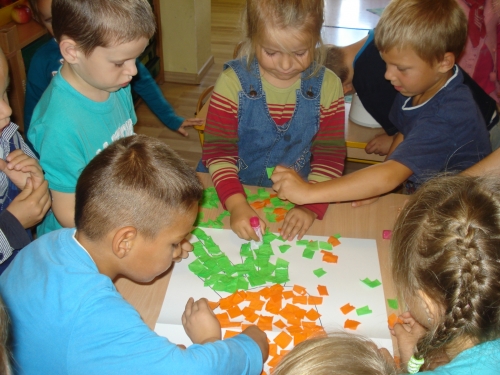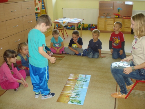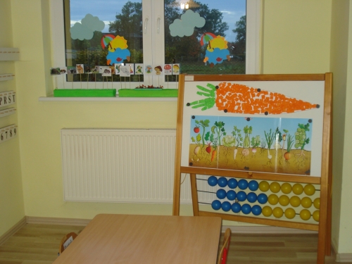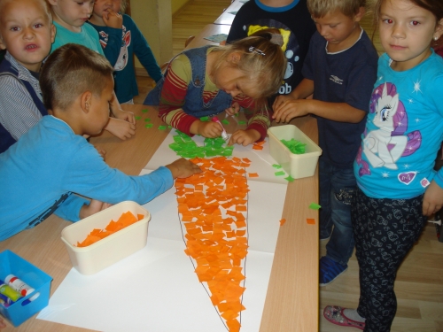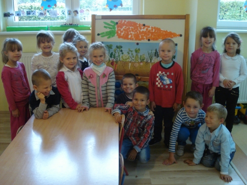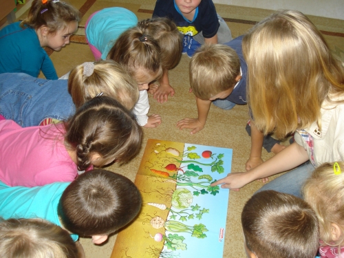 Potem każdy z nas wybrał jedno warzywo z koszyka i umieszczał je według poleceń pani.