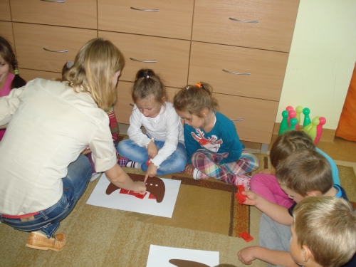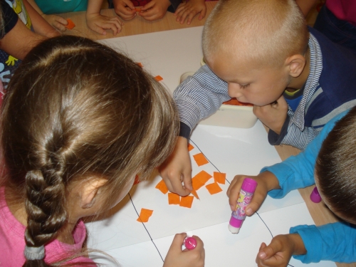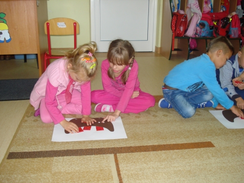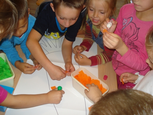 Następnie nakładaliśmy sylwety warzyw na takie same przedstawione na plakacie.