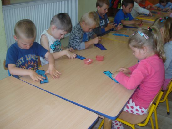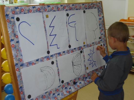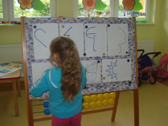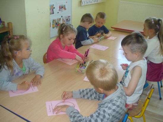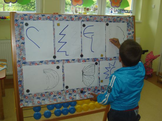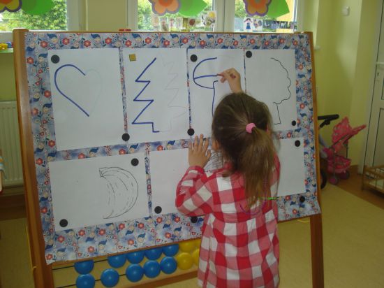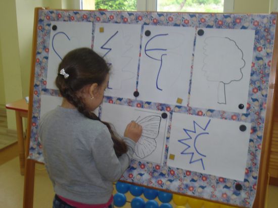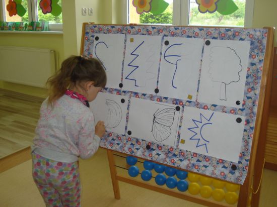 Symetrycznie dorysowywaliśmy brakujące połówki rysunków.