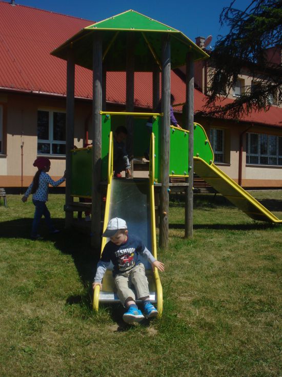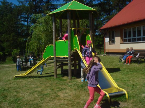 Korzystając z pięknej pogody bawiliśmy się na szkolnym podwórku.
