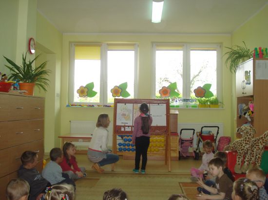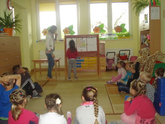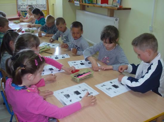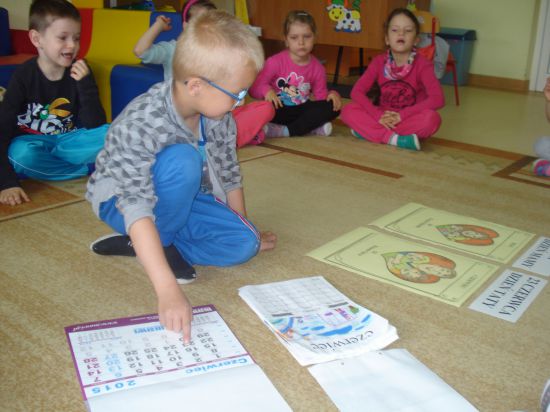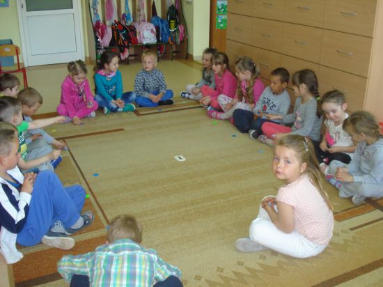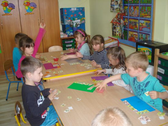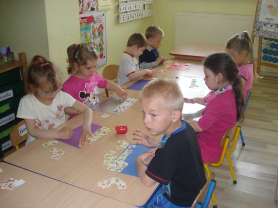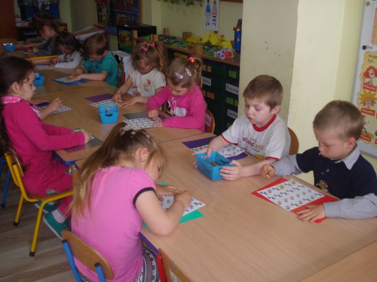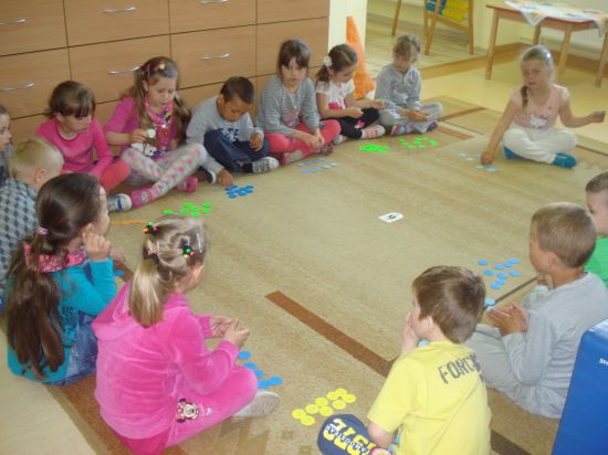 Przyklejaliśmy obrazki w określonym rytmie.
