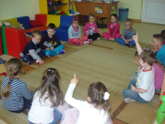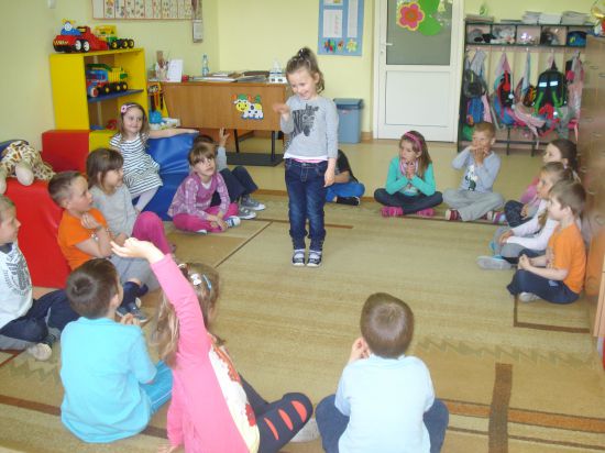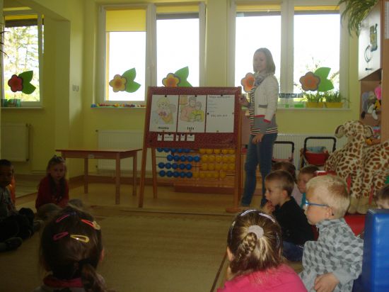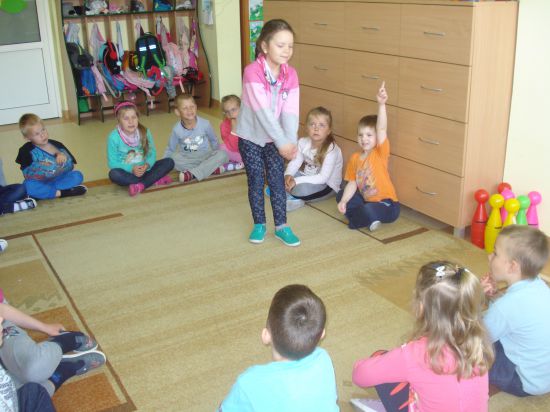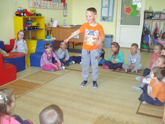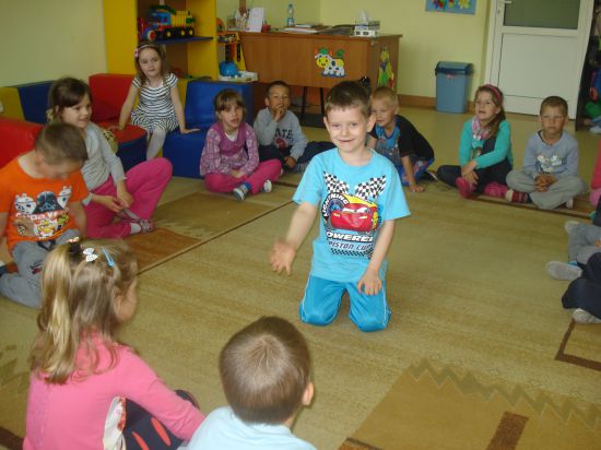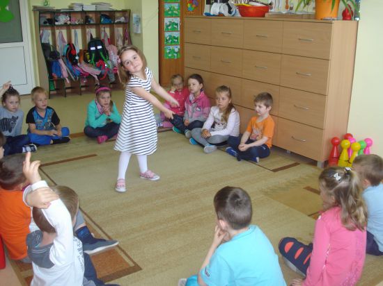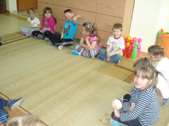 Turlaliśmy do siebie piłkę, mówiąc, jakie czynności wykonuje mama lub tata.