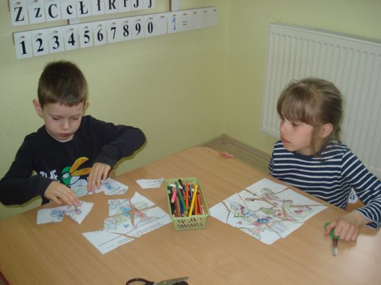 Samodzielnie pokolorowaliśmy, wycięliśmy i ułożyliśmy puzzle.