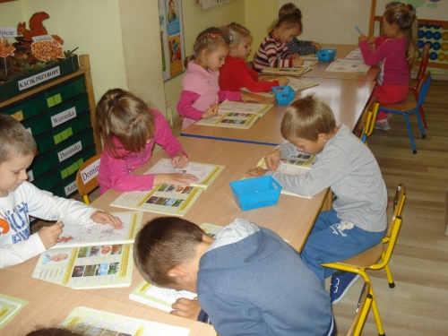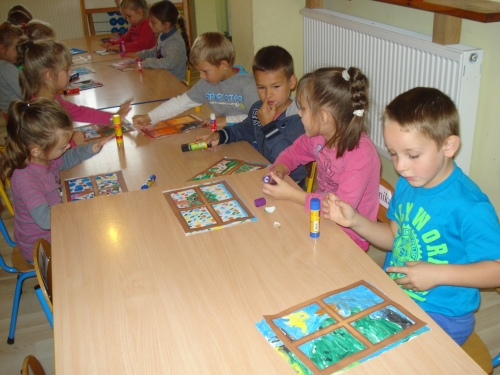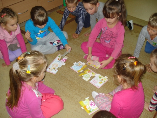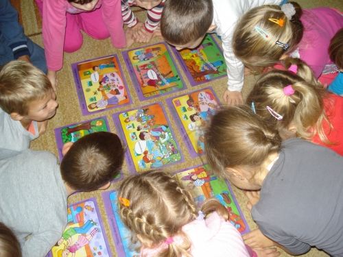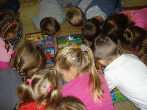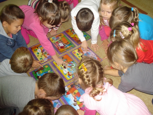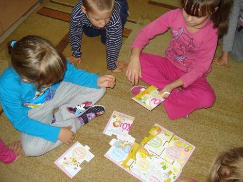 Uczyliśmy się układać puzzle, a następnie omawialiśmy przedstawiony na nich obrazek.