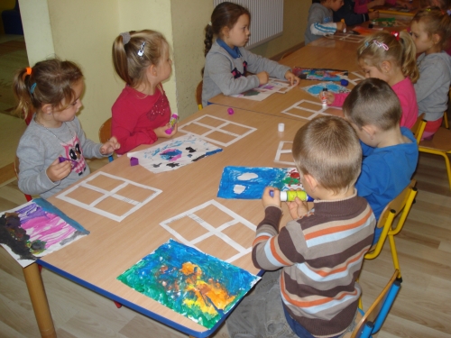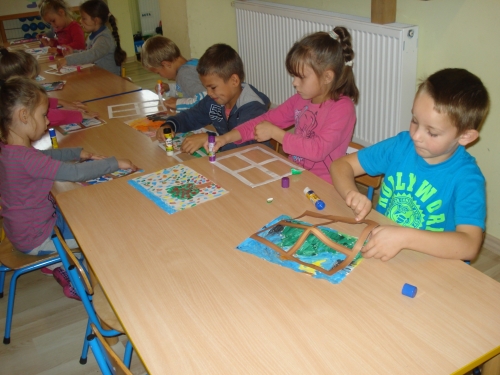 Farbami wykonaliśmy również prace pt. "Jesienny widok z okna".
