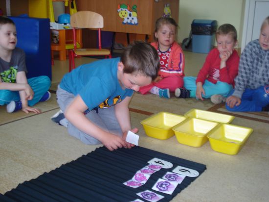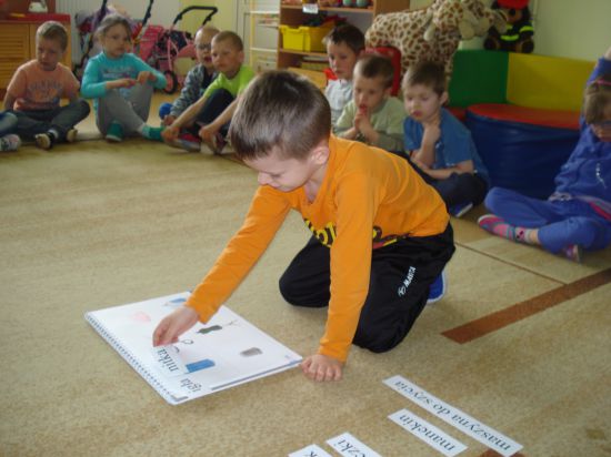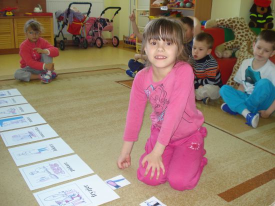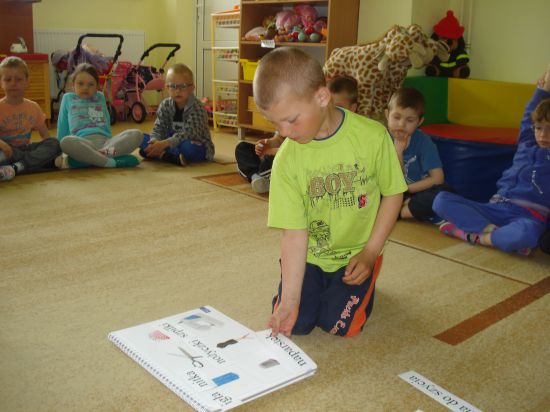 Obejrzeliśmy również różne rodzaje igieł oraz podpisaliśmy obrazki przedstawiające przedmioty potrzebne w pracy krawcowej. Ich nazwy dzieliliśmy na sylaby i głoski, określaliśmy pierwsza i ostatnią głoskę.