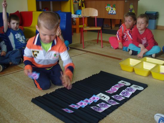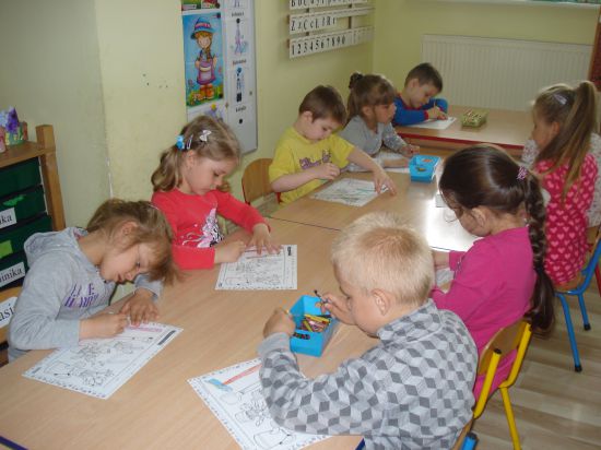 W naszych książkach pokolorowaliśmy rysunki przedstawiające pieczywo, a następnie otoczyliśmy pętlami pieczywo o takim samym kształcie. Liczyliśmy pieczywo w każdej pętli oraz porównywaliśmy jego liczbę.