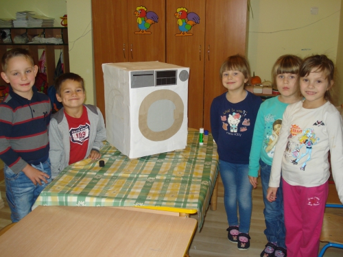 Druga grupa wykonała pracę przedstawiającą pralkę.