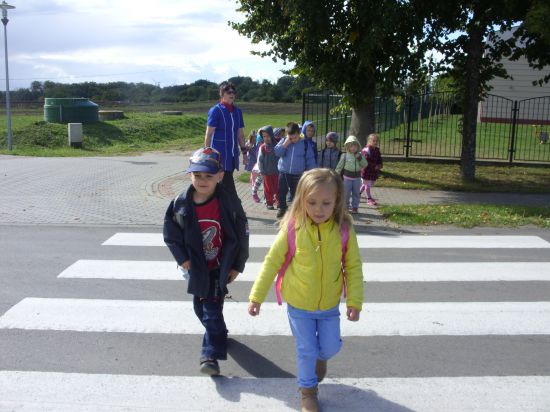 Wybraliśmy się również na spacer, który miał na celu kształtowanie właściwych nawyków w zakresie prawidłowego i kulturalnego uczestniczenia w ruchu drogowym.