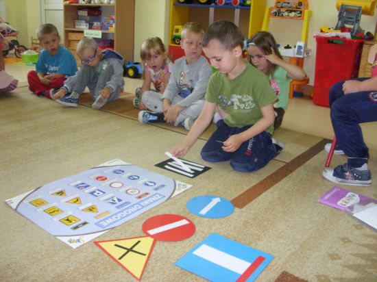 Podczas rozmowy, zabaw ruchowych i innych sytuacji dzieci miały możliwość wzbogacić zasób wiadomości, a także poszerzyć swoje zainteresowania zasadami ruchu drogowego.