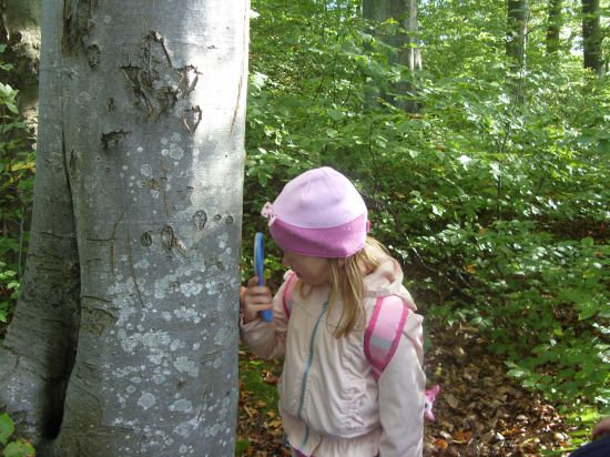 Następnie wyruszylismy na spacer do pobliskiego parku w celu obserwowania drzew. Dzieci oglądały przez lupę listki, korę drzew, szyszki, mech.