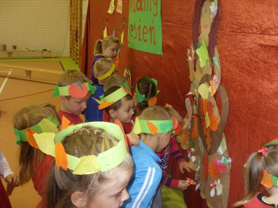 W piątkowy poranek dzieci z oddziału przedszkolnego i z kl. I-III świętowały Dzień Jesieni.