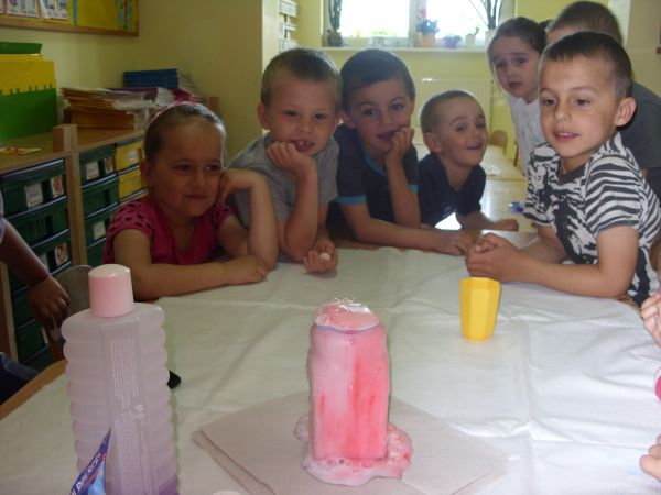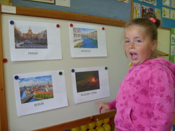 Zapoznały się rónież z włoskimi miastami: Rzymem, Wenecją oraz Sycylią, na której znajduje się najwyższy wulkan w Europie - Etna. Dzieci wykonały doświadczenie, które pomogło im zrozumieć, co tojest wulkan.