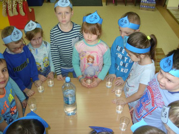 22 marca przypada Międzynarodowy Dzień Wody. Z tej okazji w tym dniu zajęcia w przedszkolu miały na celu uświadomienie dzieciom znaczenia wody w przyrodzie, konieczności jej oszczędzania oraz nawyku picia wody.