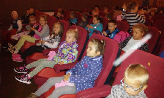 15 września dzieci z oddziału przedszkolnego wraz ze starszymi kolegami z kl. I -III uczestniczyły w pokazie filmów animowanych w lęborskim kinie "Fregata". Dzieci obejrzały kilka bajek, m.in. "Agatka i Papiernik", "Kluskowa Brama".