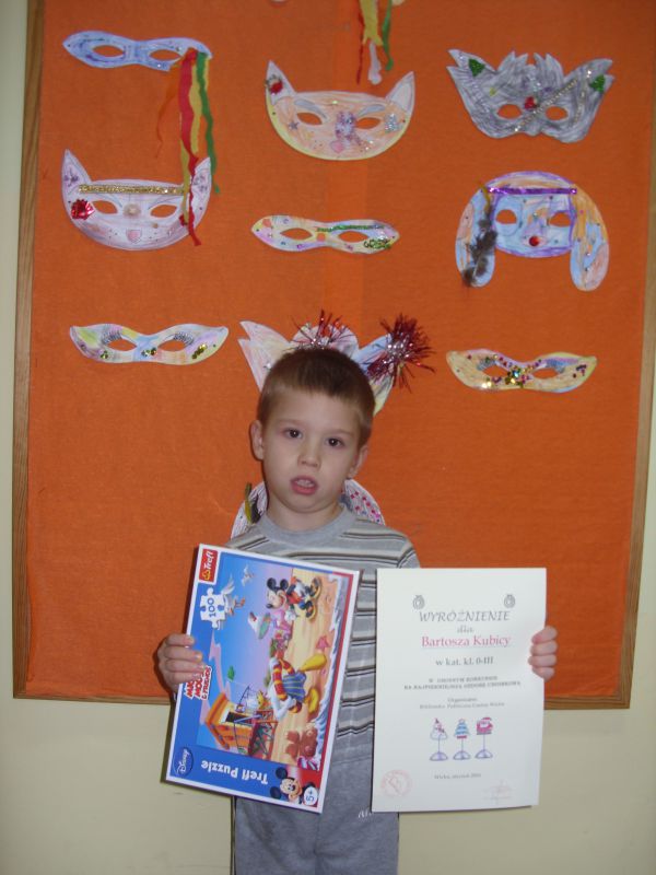 Wyróżnienie w tym konkursie otrzymał Bartek Kubica. Dostał on dyplom oraz nagrodę. Pozostałe osoby biorące udział wkonkursie również otrzymały drobne upominki.