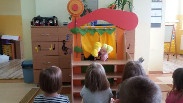 Nasz nowy piękny teatrzyk uatrakcyjnił nam czwartkowe przedpołudnie. Z pomocą pięknych pacynek, dzieci zobaczyły bajkę pt. "Kopciuszek". Przy okazji poruszyliśmy temat bezinteresownej pomocy innym i wolontariatu, nawiązując do postaci dobrej wróżki.