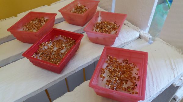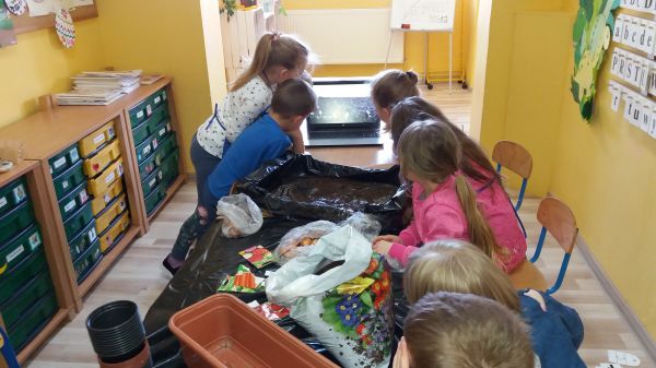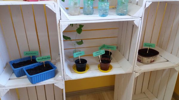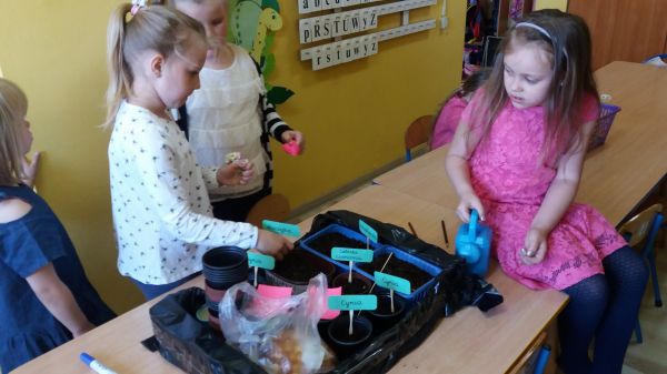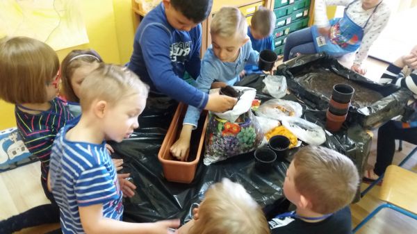 W szkole znalazło się kilka drewnianych skrzynek, którym w przedszkolu nadaliśmy nowe życie. Wiosna już w pełni, więc czas założyć własny mini-ogródek. Zobaczyliśmy na filmach etapy wzrostu różnych roślin, a w ziemi znaleźliśmy piękny okaz dżdżownicy. Pierwsza była fasolka, potem, rzeżucha, a teraz mamy już cebule, marchewki, rzodkiewki, groszek, koper, maciejki i cynie daliowe. Nasiona mamy jeszcze w zapasie. Niech nam rosną! Rośliny również :)