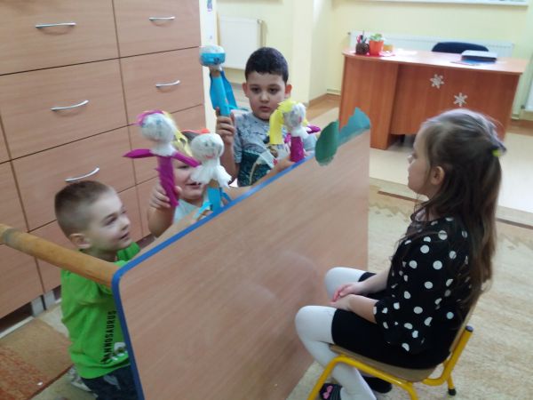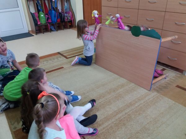Pozytywny wpływ teatroterapii na człowieka jest coraz bardziej oczywistym. W przedszkolu dzieci z przyjemnością wcielają się w role postaci z bajek. Buduje to poczucie własnej wartości, ułatwia wyrażanie skrytych emocji i kształtuje mowę. Tekturowe rurki, trochę gazety, bibuły i zabawa była do końca dnia.