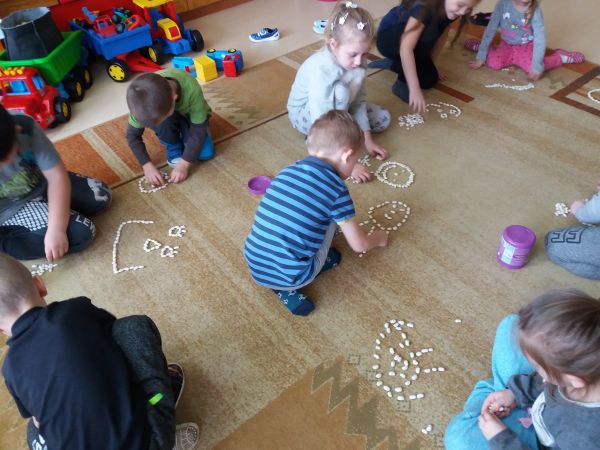 Fasolki są bardzo wdzięcznym środkiem dydaktycznym w przedszkolu. Można je przeliczać, dodawać, układać z nich kształty liter i cyfr rozwijając przy tym małą motorykę, ale można z nimi zrobić też lekcję szacunku. Rozmowy o emocjach zawsze wywołują wiele emocji. Warto czasem zatrzymać się i zastanowić, czy te emocje są dobre, czy raczej destruktywne i jak czulibyśmy się w skórze drugiego człowieka w danej sytuacji. Dzień zwieńczony mroźnym spacerkiem, podczas którego temat szacunku nadal nam towarzyszył.