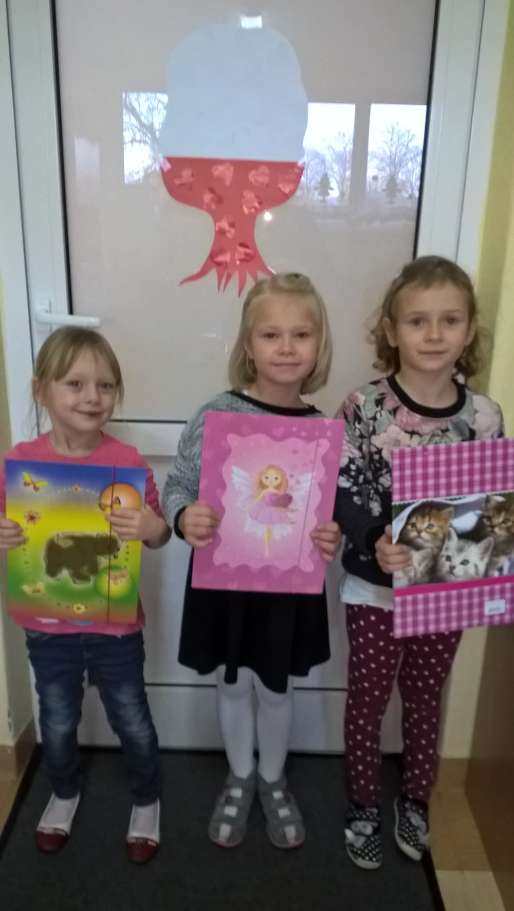 Lena Reczulska, Nikola Szumańska oraz Antonia Dampc wykonały prace plastyczne na konkurs organizowany przez Bibliotekę Gminną w Wicku. Za udział w wydarzeniu dziewczynki otrzymały teczki.