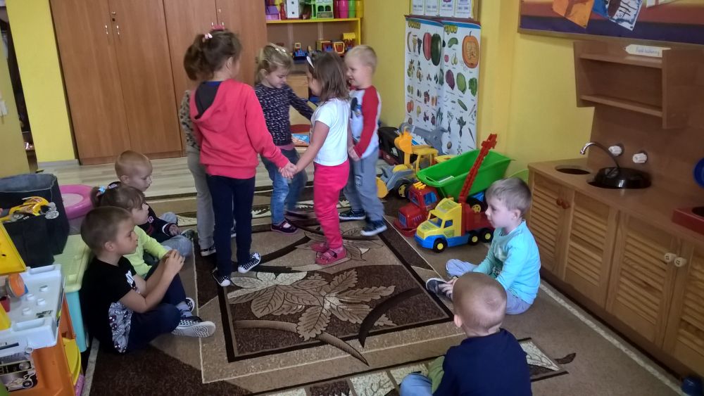 W ostatnim czasie zajmowaliśmy się kręgiem tematycznym "Co z czego otrzymujemy?". Wysłuchaliśmy piosenki „Jak to z chlebem było?” i poznaliśmy etapy produkcji chleba. Ćwiczyliśmy mięśnie podczas zabawy „Mikser” oraz równowagę, udając baletnice. W parach bawiliśmy się w „Igłę z nitką”.