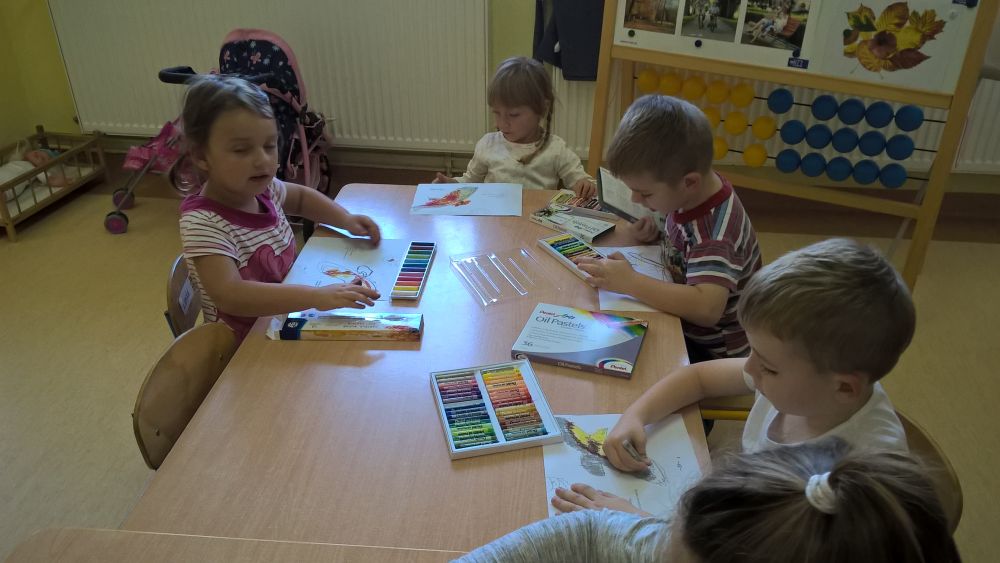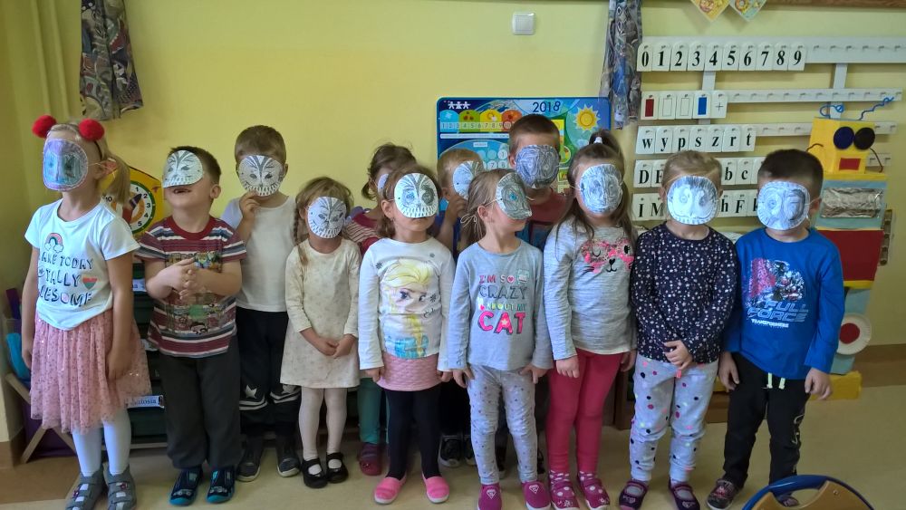 W sali pokolorowaliśmy ptaki według kodu oraz wykonaliśmy maski-sowy.