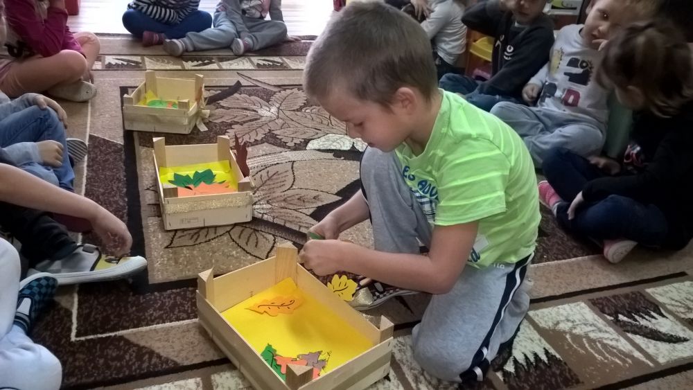 Dopasowaliśmy kształty liści do odpowiednich skrzynek, a następnie przeliczaliśmy liście.