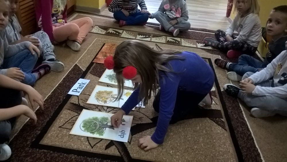 Poznaliśmy drzewa rosnące w parku i dopasowywaliśmy do nich podpisy.