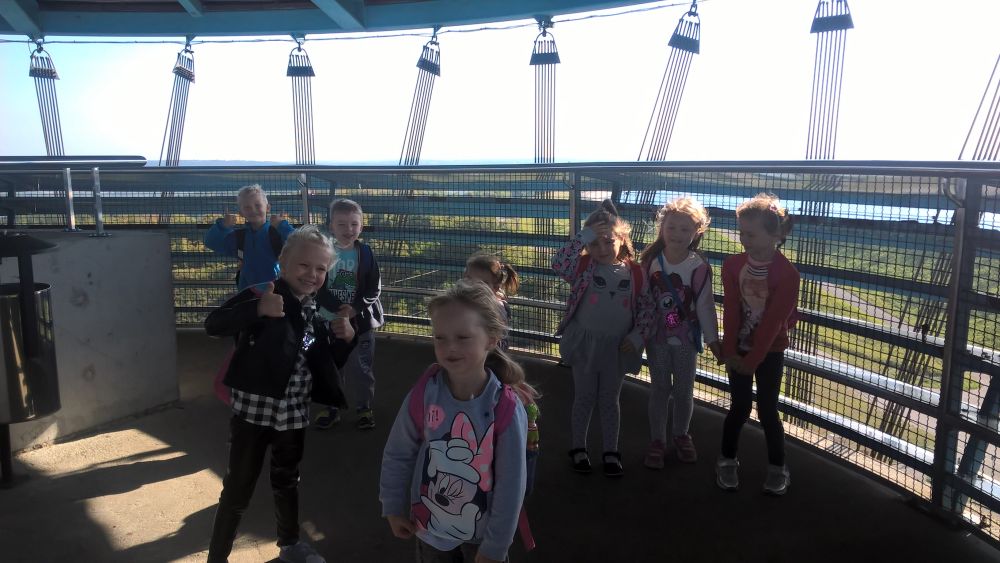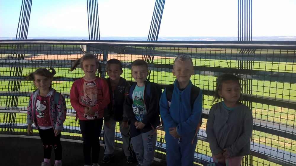 19. września wspólnie z kolegami i koleżankami z klas I-III dzieci z Oddziału Przedszkolnego pojechały na wycieczkę do Gniewina. Na miejscu odważnie wjechały windą na taras wieży widokowej, skąd podziwiały kaszubskie krajobrazy.