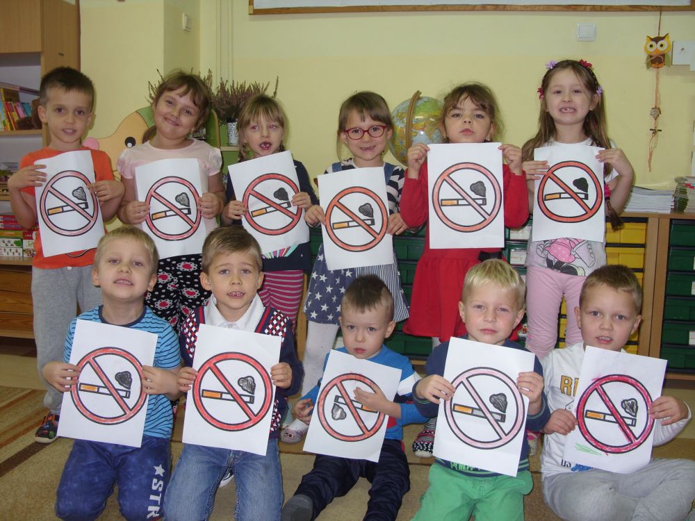 Dzieci z naszego przedszkola biorą udział w programie pt. "Czyste powietrze wokół nas". Program ma charakter profilaktyczny i dostosowany jest do możliwości rozwojowych i intelektualnych dzieci. Pani pedagog przeprowadziła rozmowę z przedszkolakami na temat szkodliwości palenia papierosów.