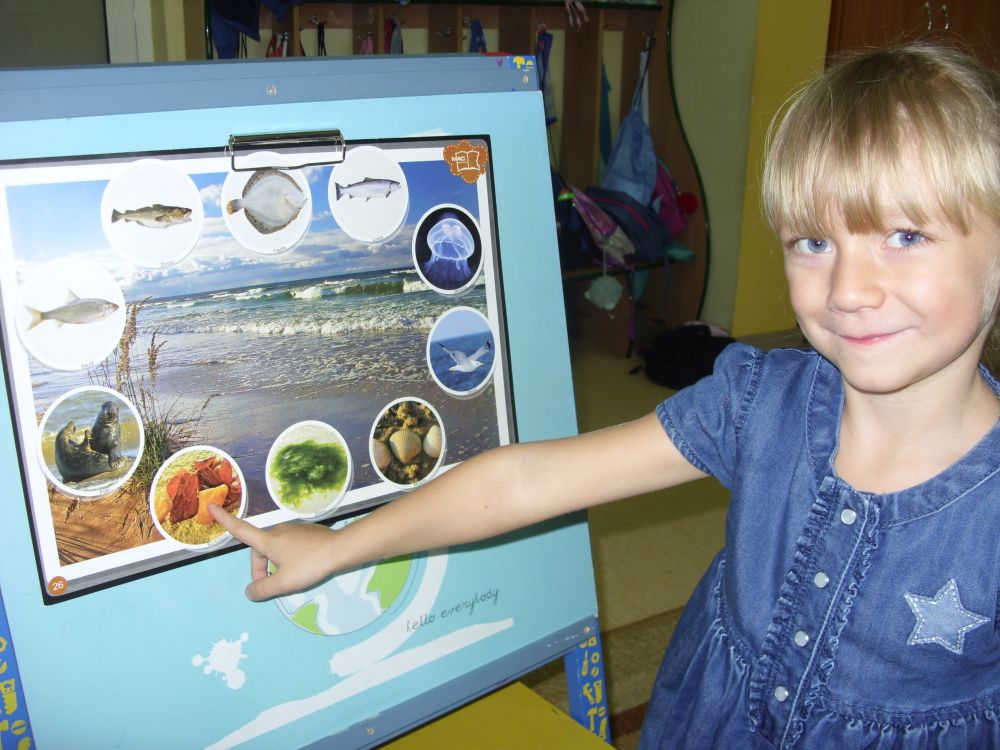 Zajęcia stanowiły doskonałą okazję do zachęcenia dzieci do zabaw, dzięki którym przedszkolaki poznały i utrwaliły pojęcia związane z morzem. Dzieci poznawał tajemnice wodnego świata, oglądały morskie muszle i ilustracje.