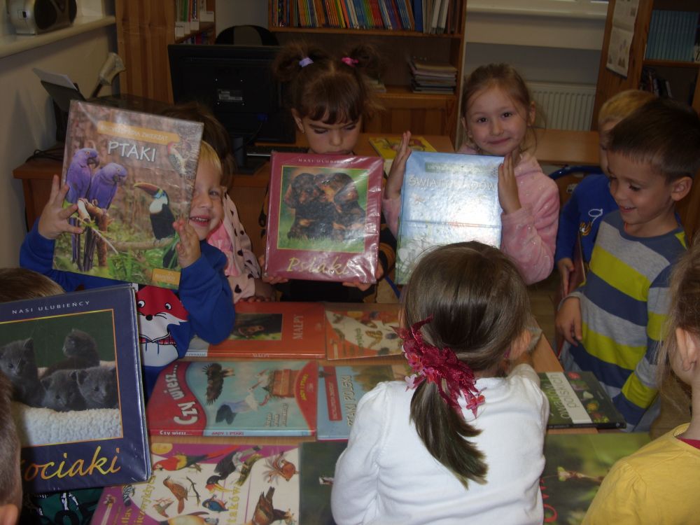 Na początku zajęć odwiedziliśmy bibliotekę. Wypożyczyliśmy wiele interesujących książek o zwierzętach.