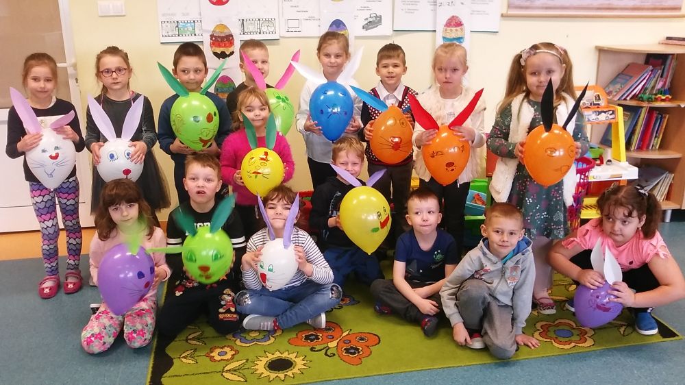 Jak co roku dzieci z oddziału przedszkolnego z wielkim zaangażowaniem przygotowywały się do radosnych Świąt Wielkanocnych. Podczas zajęć poznały zwyczaje świąteczne: zdobienie jajek, wykonanie palmy, przygotowanie koszyczka oraz chętnie wykonywały ozdoby wielkanocne.