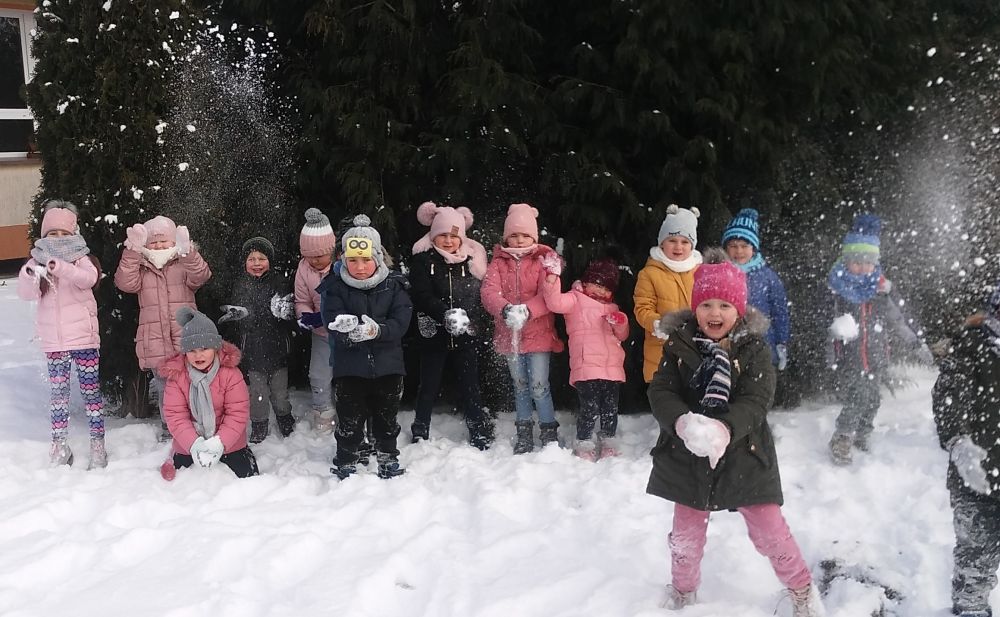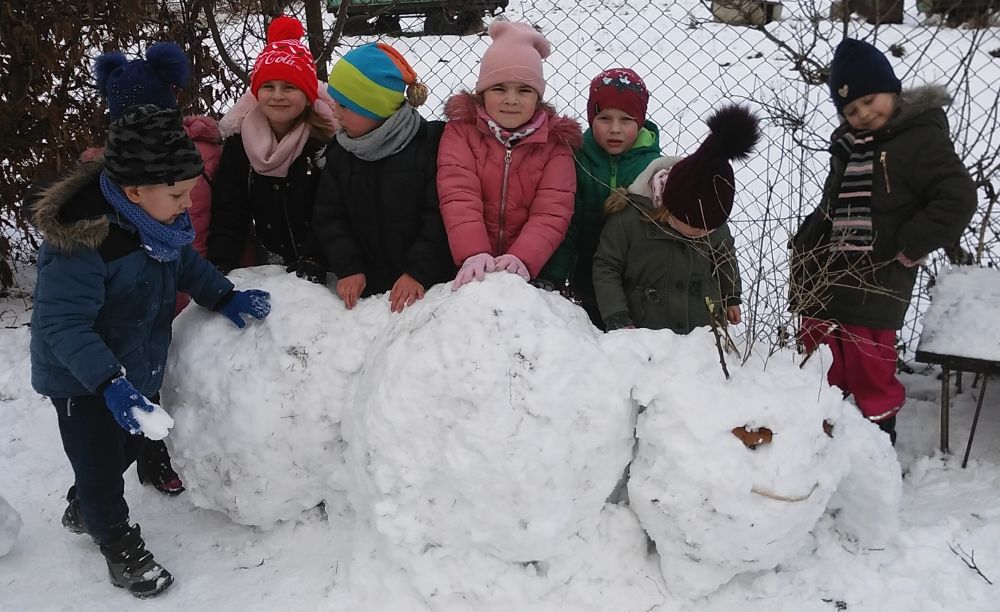 W tym roku zima nie szczędziła puszystego śniegu i mrozu. Przedszkolaki z wielką radością wykorzystywały te dary podczas zabaw na powietrzu.