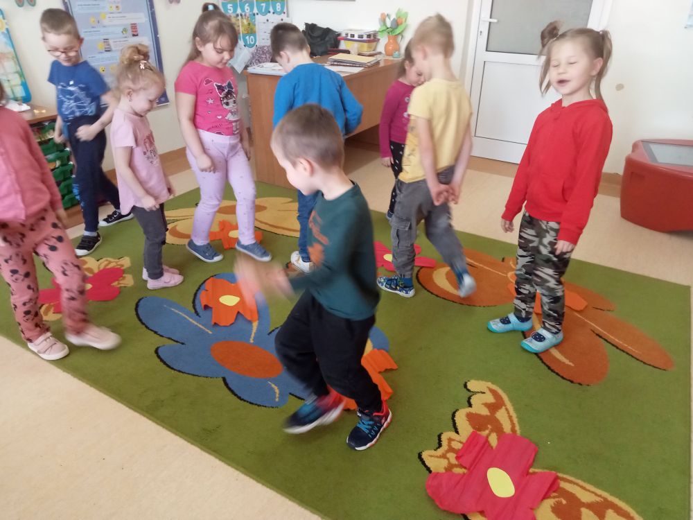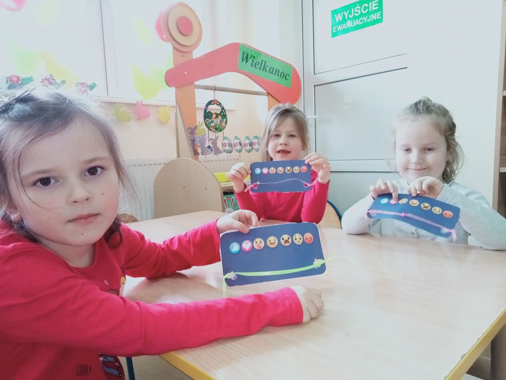 W kwietniu rozmawialiśmy o emocjach i kosmosie. Wykonaliśmy "Skale emocji" oraz kolorowaliśmy rakiety. Dorysowywaliśmy dzieciom oczy i usta charakterystyczne dla wybranych emocji. Poznaliśmy rodzaje emocji, zastanowiliśmy się, kiedy je odczuwamy i, jak wówczas się zachowujemy. Poruszaliśmy się po klasie w różnym tempie, omijając sylwety kwiatów z bibuły, a na koniec wąchaliśmy te kwiaty.