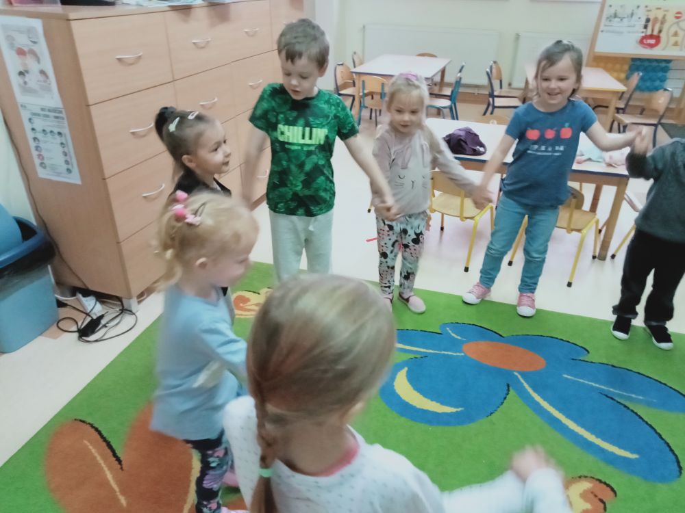 Razem uczymy się śpiewać piosenki w połączeniu z tańcem. Na naszym dywanie ćwiczymy różne grupy mięśniowe i świetnie się przy tym bawimy. Przed nami cały rok nauki, zabawy, poznawania siebie nawzajem. :-)