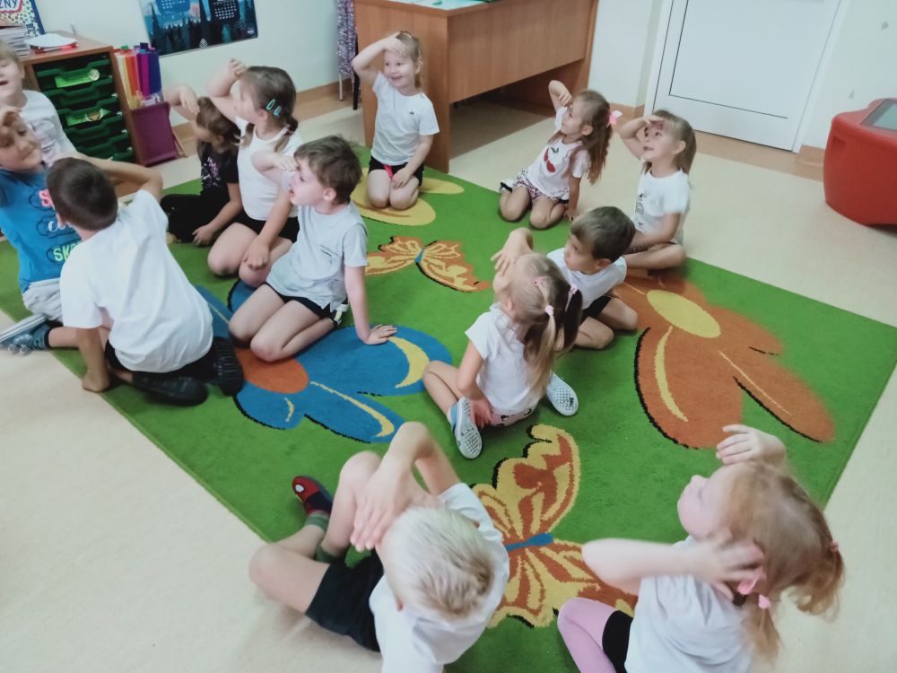 Oczywiście potrzebujemy wiele ruchu, więc codziennie ćwiczymy np. skakanie jak wiewiórki, marsz z klaskaniem pod kolanem, przed sobą, za sobą, nad głową albo obserwowanie nieba. Masowaliśmy sobie nawzajem plecy i było przy tym sporo radości, a masaż okazał się przyjemny.