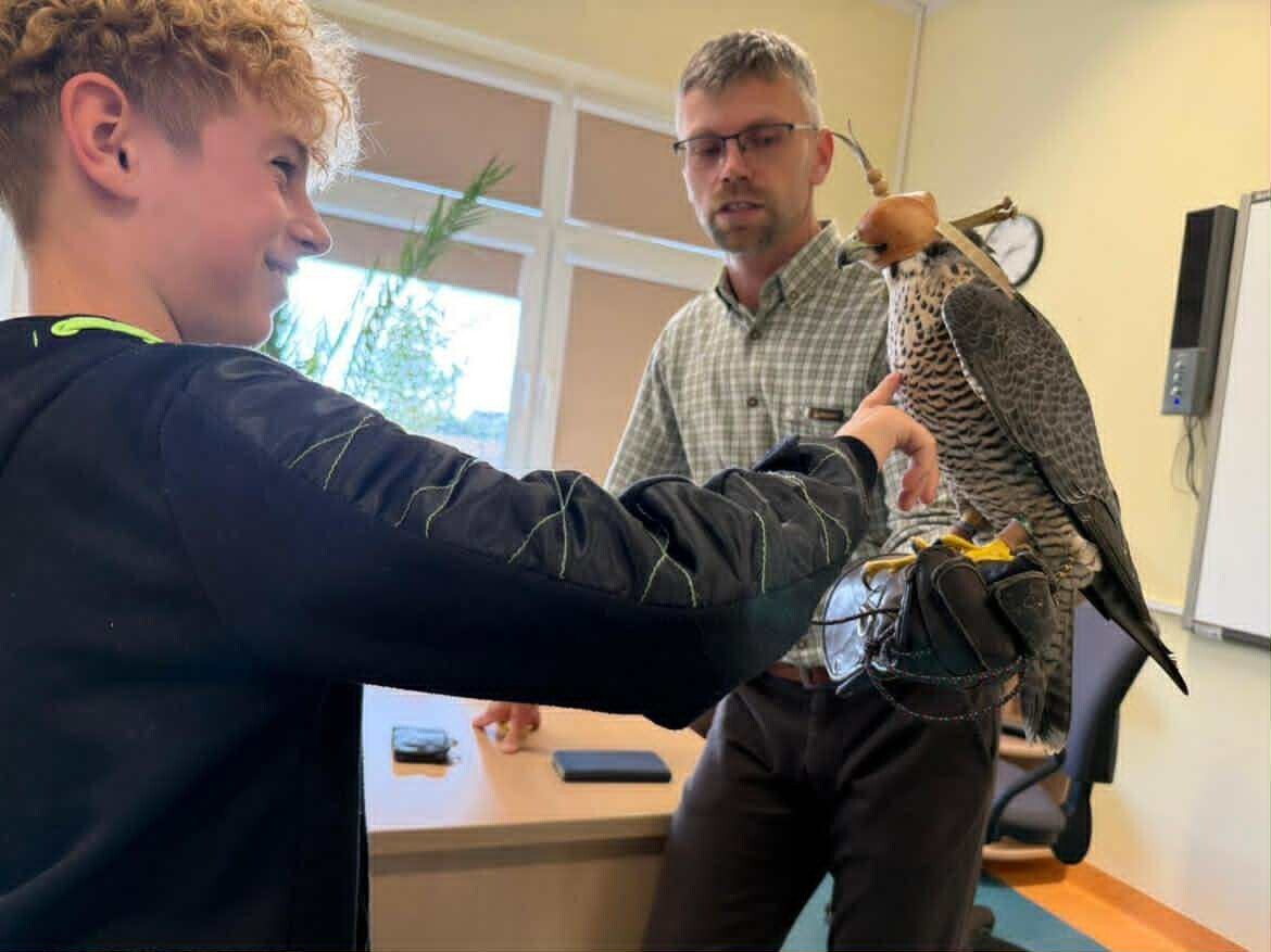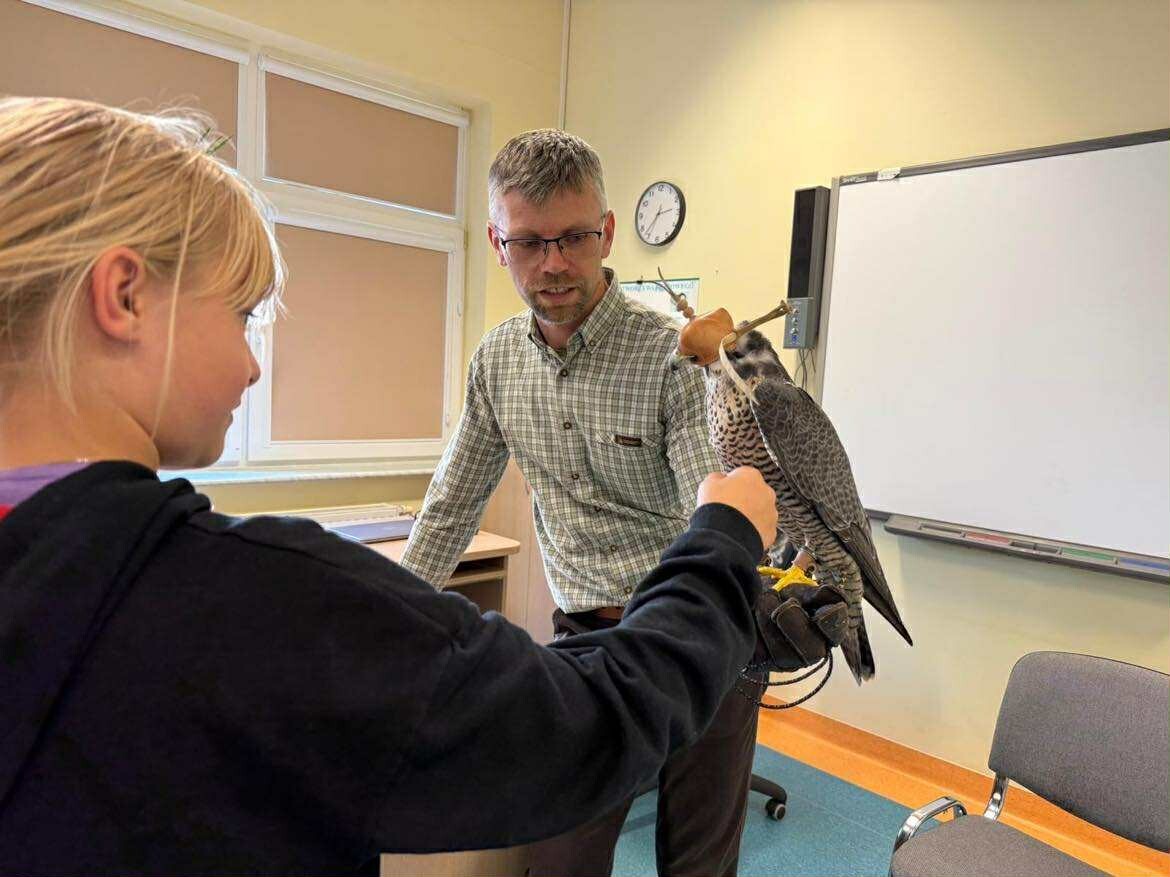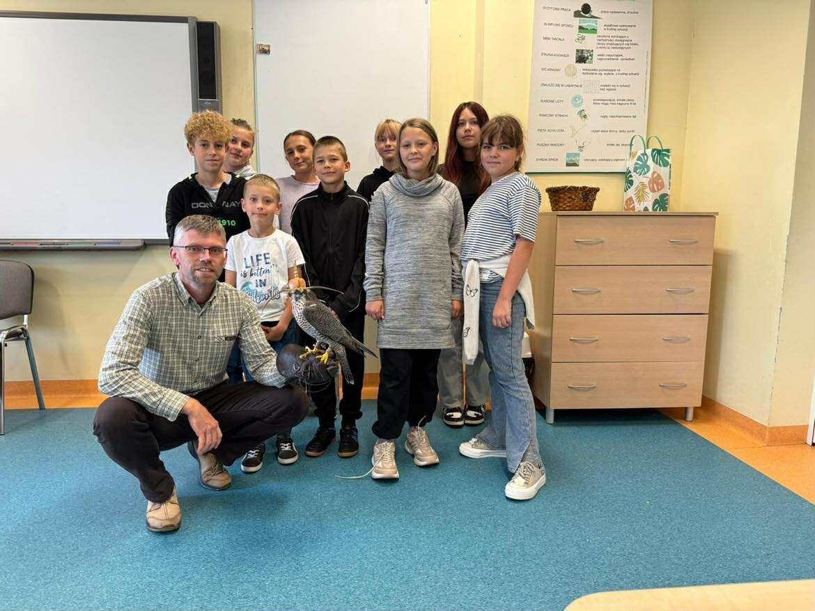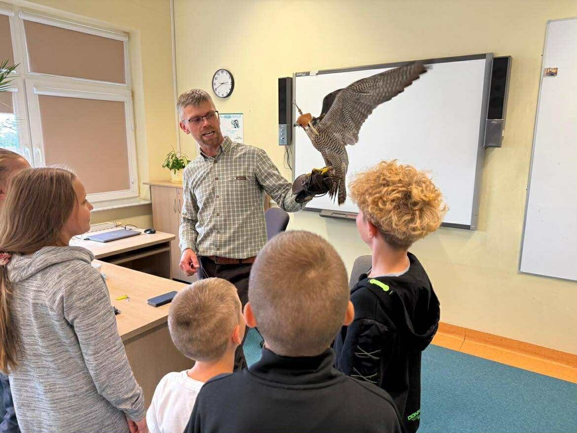 Dzisiaj poznaliśmy niesamowicie ciekawe fakty z ptasiego świata! Odwiedził nas pasjonat i sokolnik – pan Łukasz Grzenkowski wraz z piękną samicą sokoła wędrownego. Dowiedzieliśmy się mnóstwa ciekawostek o życiu ptaków drapieżnych i o ich niezwykle pomocnej roli dla człowieka. A czy Wy wiedzieliście, że sokoły potrafią w locie pionowym osiągać ponad 300 km/h. To największa prędkość na świecie ze wszystkich zwierząt ! Na zakończenie otrzymaliśmy wyjątkowy przywilej – mogliśmy wymyślić dostojne imię dla sokolej samicy.