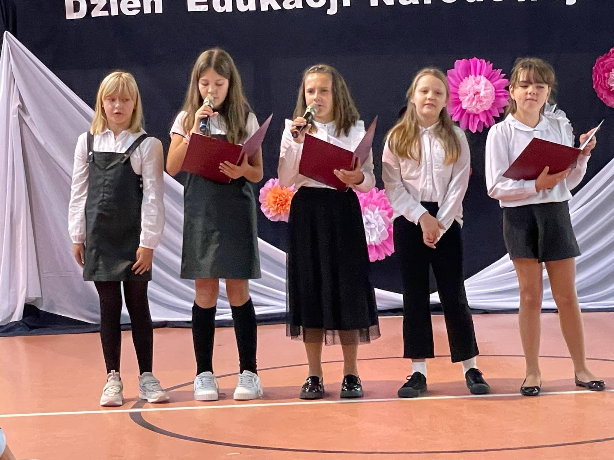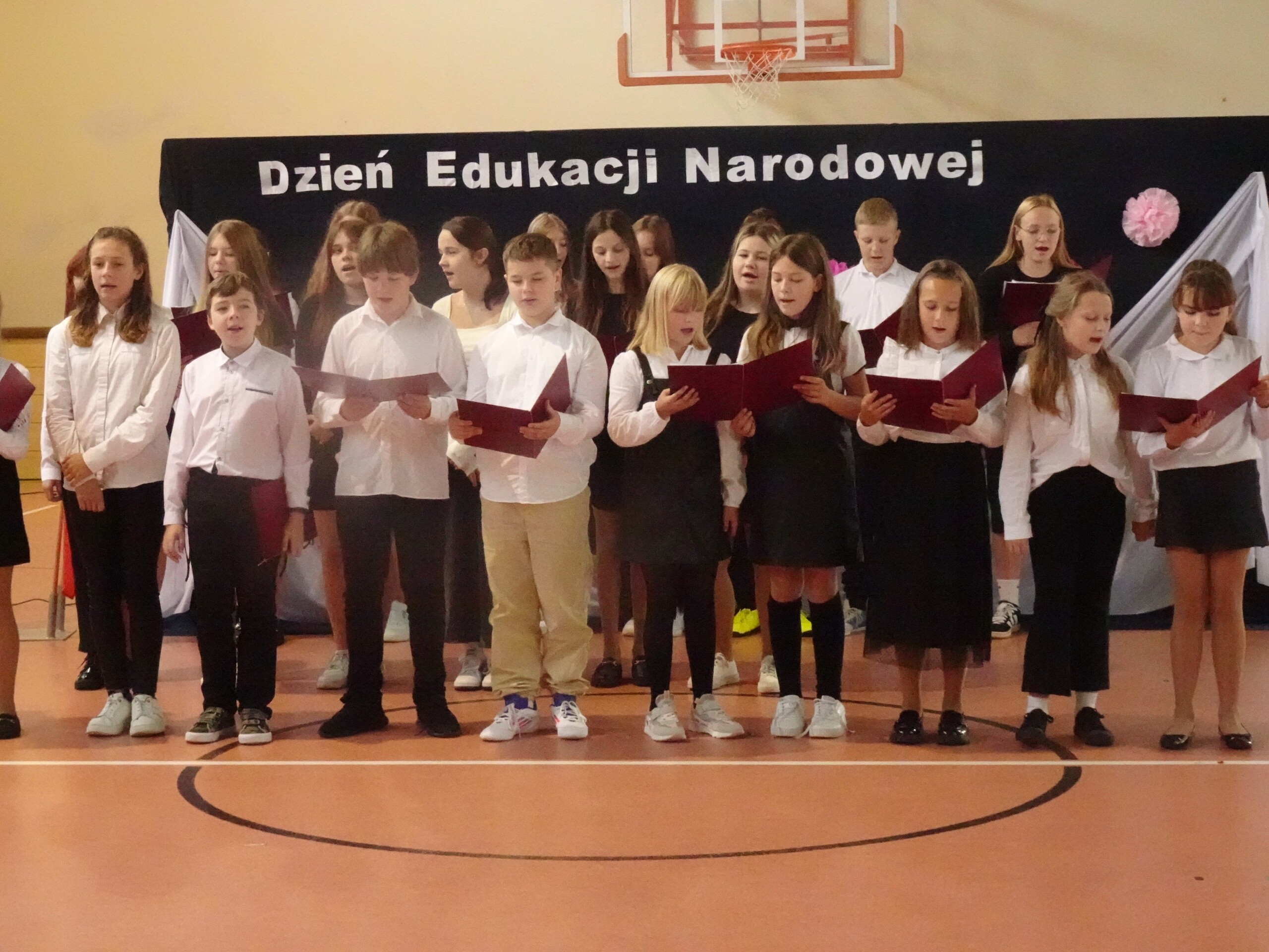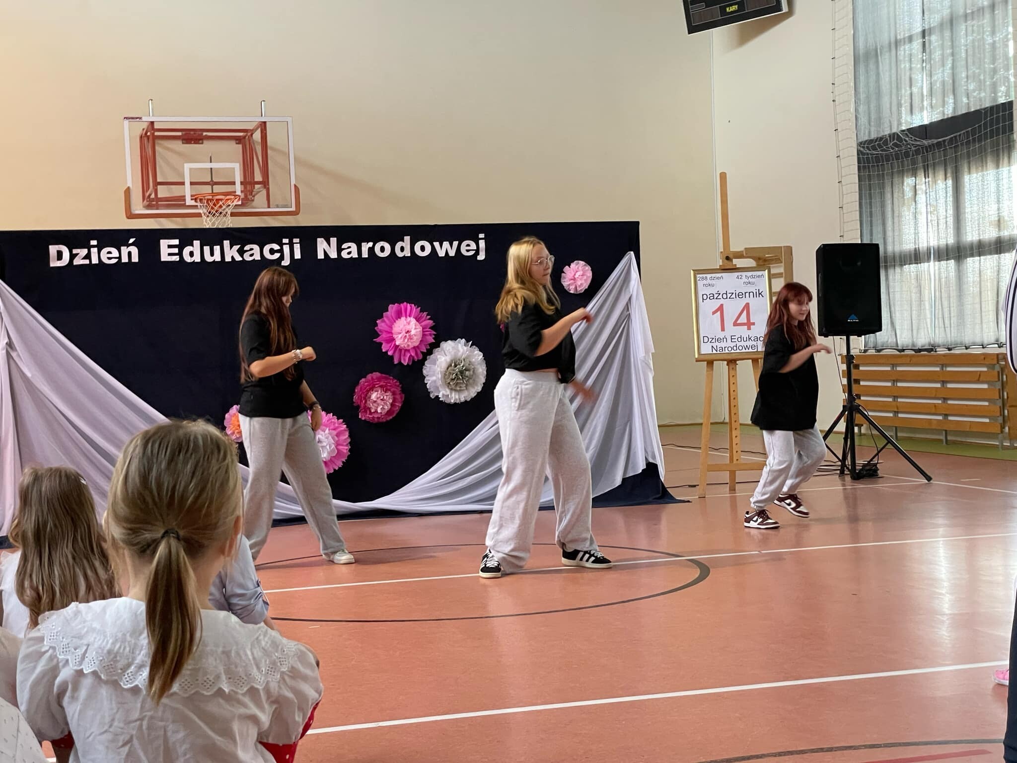 Akademia rozpoczęła się przemówieniem Pani Dyrektor – Elżbiety Mielewczyk, która przedstawiła historię tego święta, a także mówiła o trudnej, ale jakże pięknej pracy nauczyciela. Podziękowała wszystkim pracownikom szkoły za dotychczasową pracę oraz zaangażowanie, życząc wielu sił i wytrwałości. Następnie przedszkolaki oraz uczniowie klas IV – VIII przedstawili część artystyczną, podczas której słowem, piosenką i tańcem uświetnili ten wyjątkowy dzień. Wiele ciepłych i miłych słów popłynęło w kierunku naszych nauczycieli. Uczniowie wyrazili swoją wdzięczność za codzienny trud pracy swoich wychowawców, ich poświęcenie i troskę oraz złożyli życzenia wszystkim pracownikom szkoły: Dużo zdrowia, cierpliwości, wytrwałości, sukcesów zawodowych oraz zadowolenia z uczniów! Do życzeń dołączone były kwiaty, o które zadbał Samorząd Uczniowski.