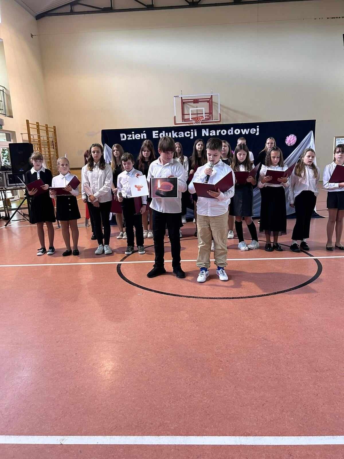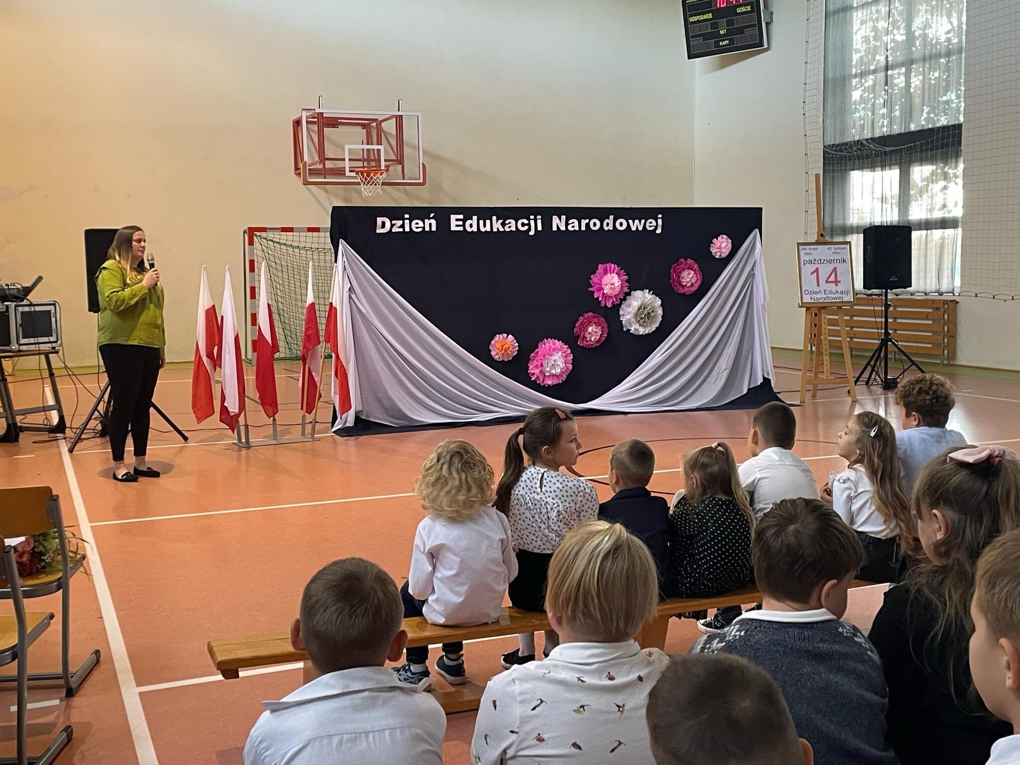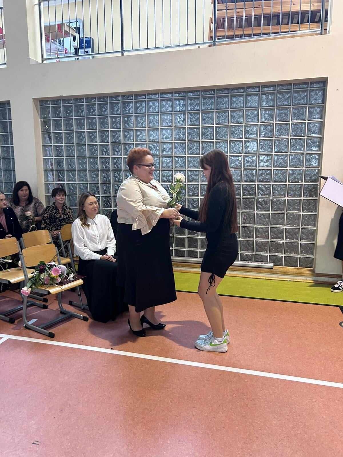 Dzień Edukacji Narodowej jest okazją do wyrażenia wdzięczności za wysiłek i wielkie serce wkładane w pracę z uczniami. W tym dniu pamiętamy o wszystkich pracownikach szkoły. I właśnie z tej okazji 11 października 2024 roku w sali gimnastycznej naszej szkoły odbył się uroczysty apel z udziałem całej społeczności szkolnej i rodziców. W apelu uczestniczyła Zastępca Wójta Gminy Wicko – p. Agnieszka Wolańska, która na ręce Pani Dyrektor złożyła kwiaty oraz życzenia dla wszystkich pracowników.