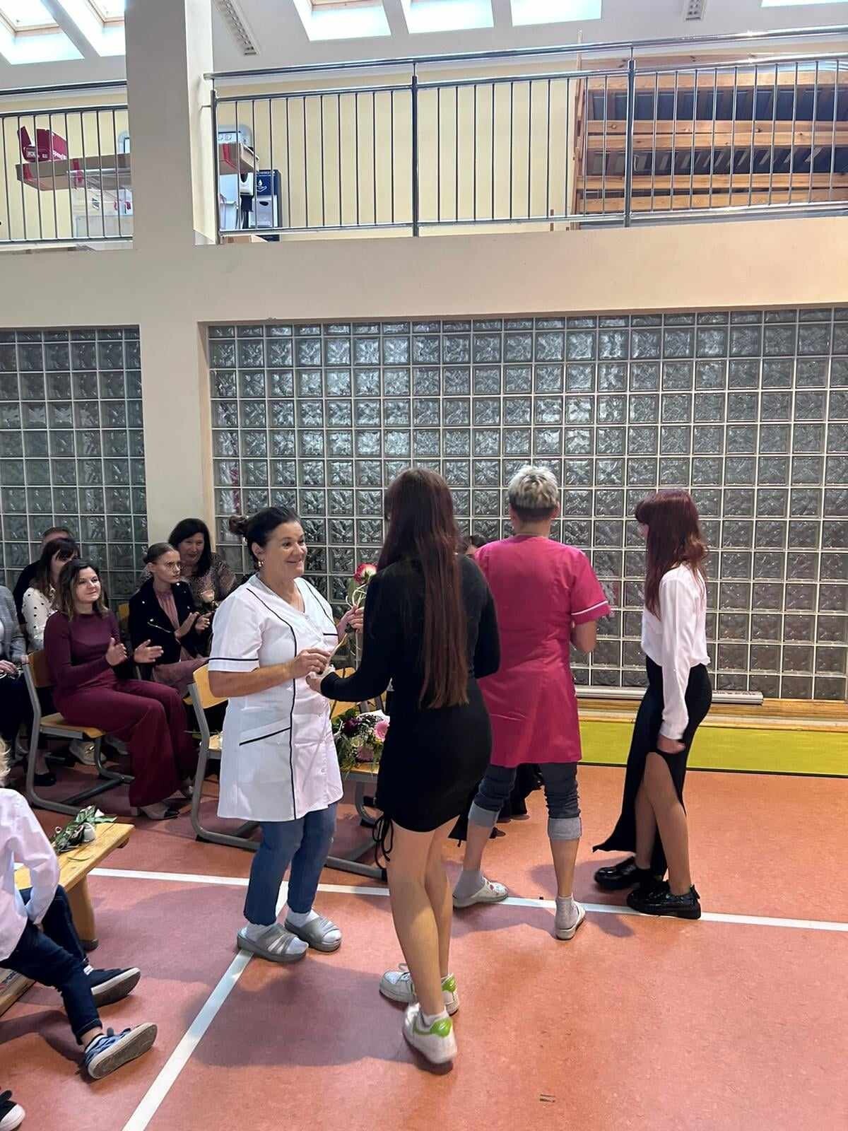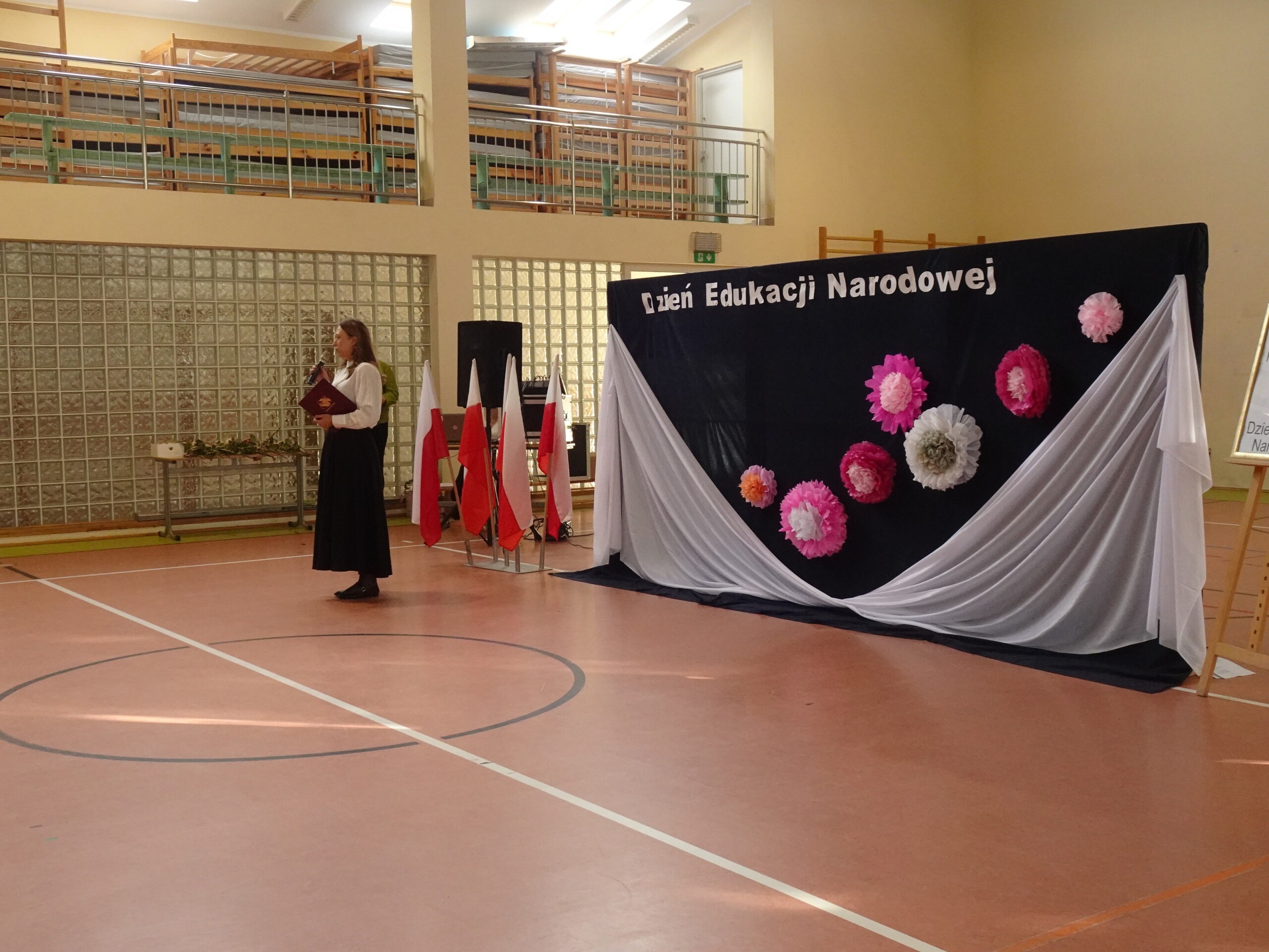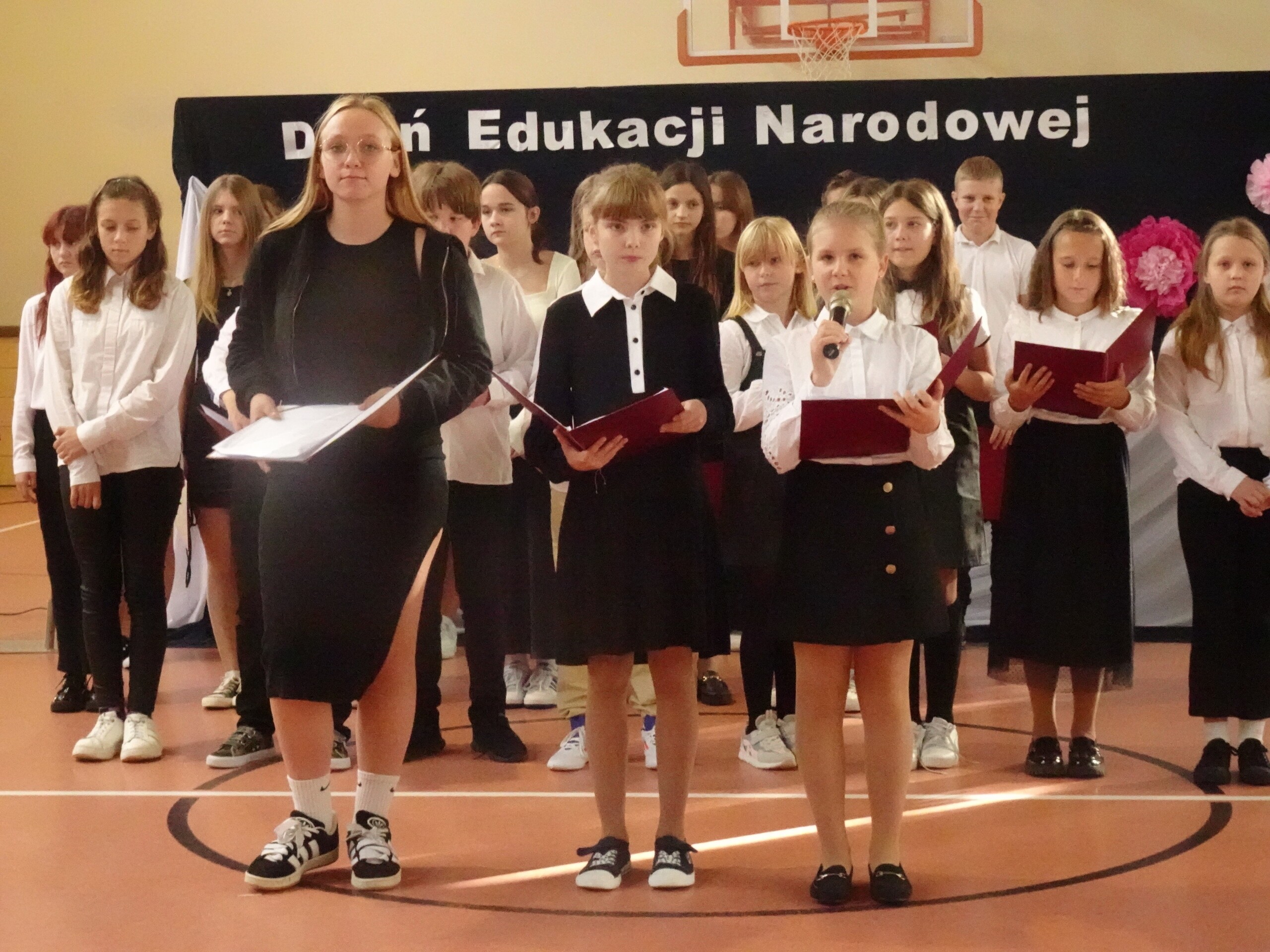 Dzień Edukacji Narodowej jest okazją do wyrażenia wdzięczności za wysiłek i wielkie serce wkładane w pracę z uczniami. W tym dniu pamiętamy o wszystkich pracownikach szkoły. I właśnie z tej okazji 11 października 2024 roku w sali gimnastycznej naszej szkoły odbył się uroczysty apel z udziałem całej społeczności szkolnej i rodziców. W apelu uczestniczyła Zastępca Wójta Gminy Wicko – p. Agnieszka Wolańska, która na ręce Pani Dyrektor złożyła kwiaty oraz życzenia dla wszystkich pracowników.